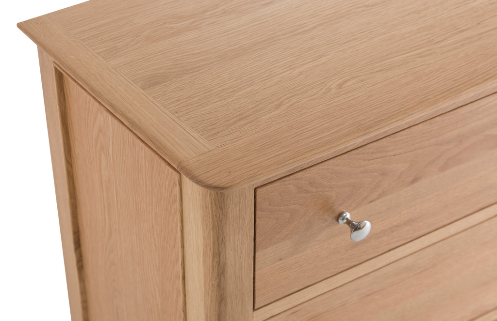 The Oslo Oak 3 Drawer Chest of Drawers is a Scandinavian inspired design 3 drawer Chest of Drawers, complimented by its beaded panels, its deep bevelled top and its simple but classic Durable Natural lacquer finish. The Oslo Oak 3 Drawer Chest, comes with a choice of modern Chrome knobs or traditional Wooded Knobs, both supplied as standard at no extra cost. This stunning 3 Drawer Chest of Drawers is ideal for smaller bedrooms or a corner or where space is at a premium.
