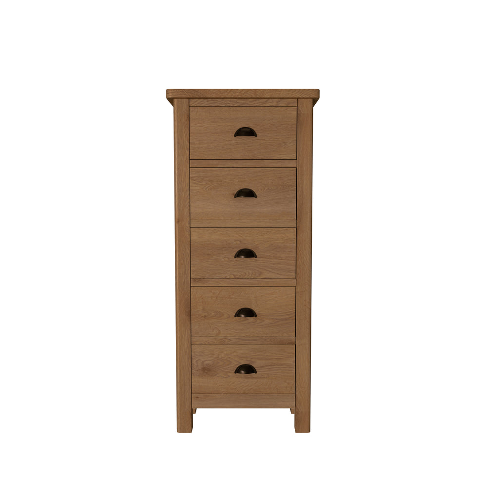 Radnor Oak Bedroom 5 Drawer Narrow Chest of Drawers