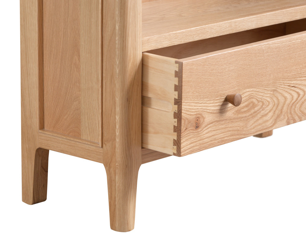 Made from Solid Oak and Oak veneers, to the highest of standards, finished with a durable natural lacquer to give it that warm natural look and that Scandinavian style. With solid backs, drawer bottoms and dovetailed drawers. Each item comes with a choice of Wooden or Chrome handles. A fantastic range for all styles and needs.