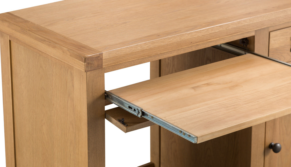 Oakhampton Oak Computer Desk with Cupboard and Tray