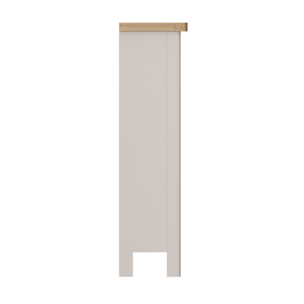 Made from Solid Oak and engineered oak panels, finished in a durable stunning Dove Grey Paint with a Oak Top that's finished in a natural lacquer.