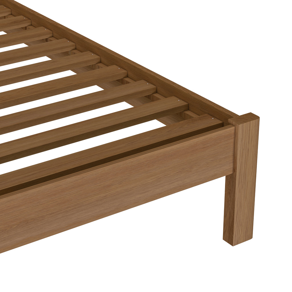 The Radnor Oak Bedroom Beds are a slatted headboard bed, with a low foot board, a sturdy bed and for added strength both the double bed and the Kind size bed have a centre support for the pine slats ensuring your mattress is fully supported, preventing roll together. This stylish slatted headboard bed is finished in a durable Classic lacquer, to give a classic oak finish adding to its long lasting style and design.