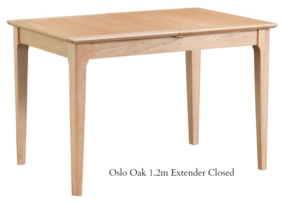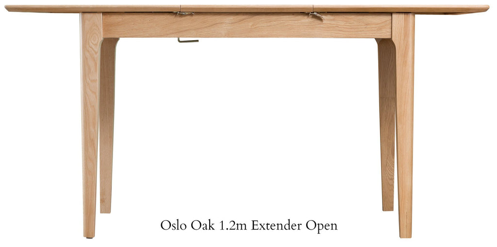 The Oslo Oak Small Extending Table, a small table for the smaller spaces, when closed the table is 1.2m long and 0.85m wide, happily seating up to 4 people, it then extends with a butterfly action in the middle opening the table to 1.65m, now able to seat 6 people.