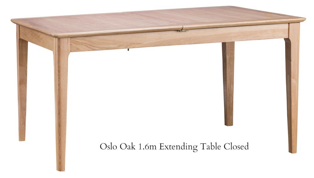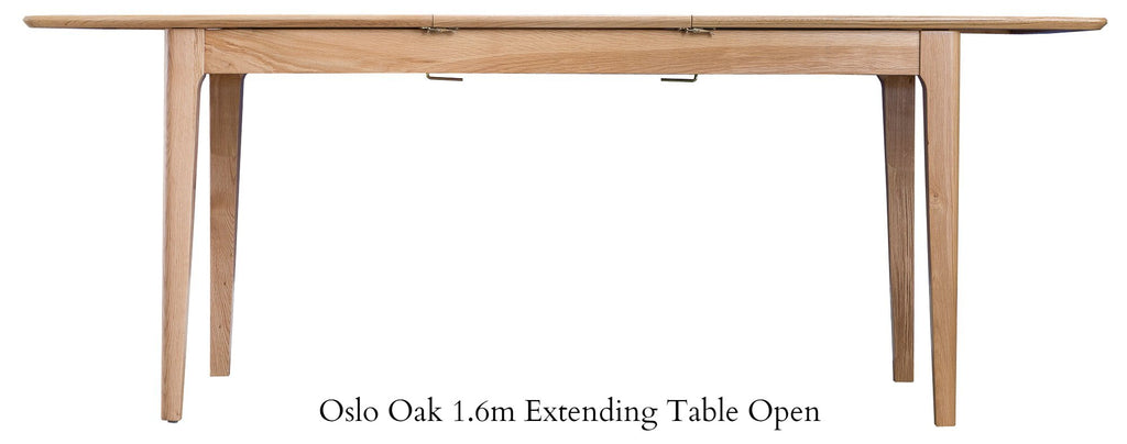 The Oslo Oak Medium 1.6m Extending Table, table for a big family, when closed the table is 1.6m long and 0.90m wide, happily seating up to 8 people, it then extends with a butterfly action in the middle opening the table to 2.1m, now able to seat a friendly 12 at a push, or 8 with ease for those big celebrations.