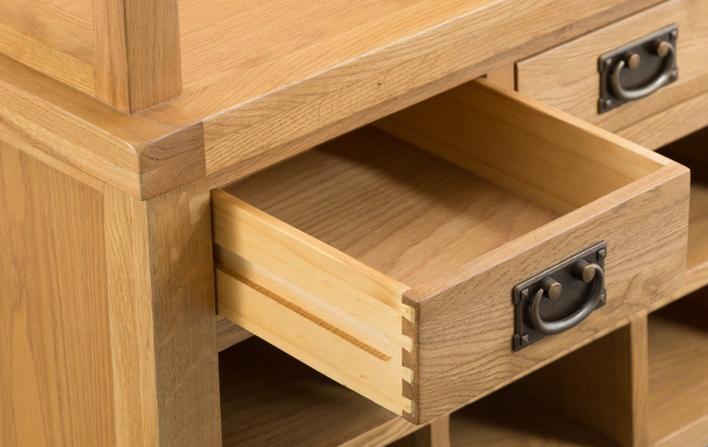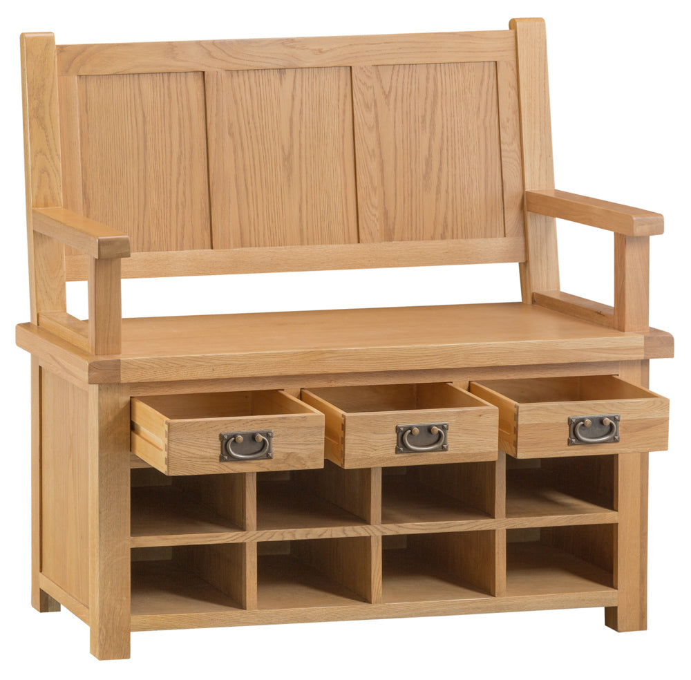 Oakhampton Oak Monks Bench with Drawers & Shoe Storage.