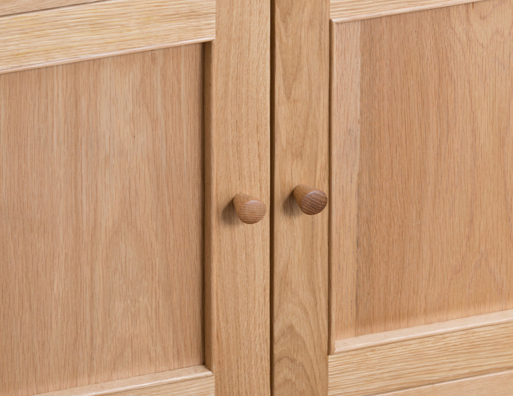 Made from Solid Oak and Oak veneers, to the highest of standards, finished in a natural lacquer to give it that warm natural look and that Scandinavian style. With solid backs, drawer bottoms and dovetailed drawers. Each item comes with a choice of Wooden or Chrome handles. A fantastic range for all styles and needs.